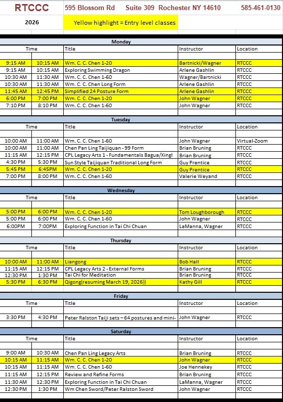 The Rochester Tai Chi Chuan Center teaches a number of styles of Tai Chi Chuan, but currently offers two entry level paths: William C. C. Chen’s Tai Chi Chuan and the Mainland 24 Tai Chi Chuan.